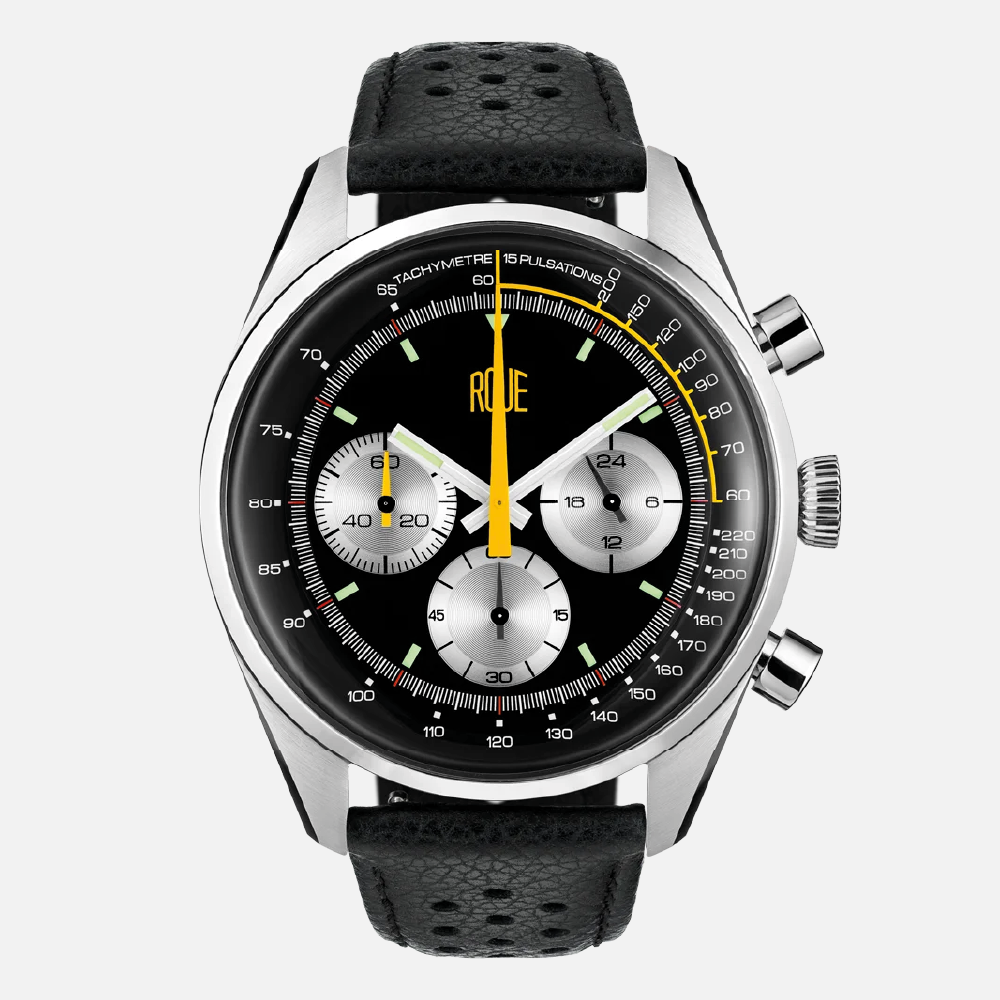 - Hours, minutes, seconds, chronograph minutes, am/pm
