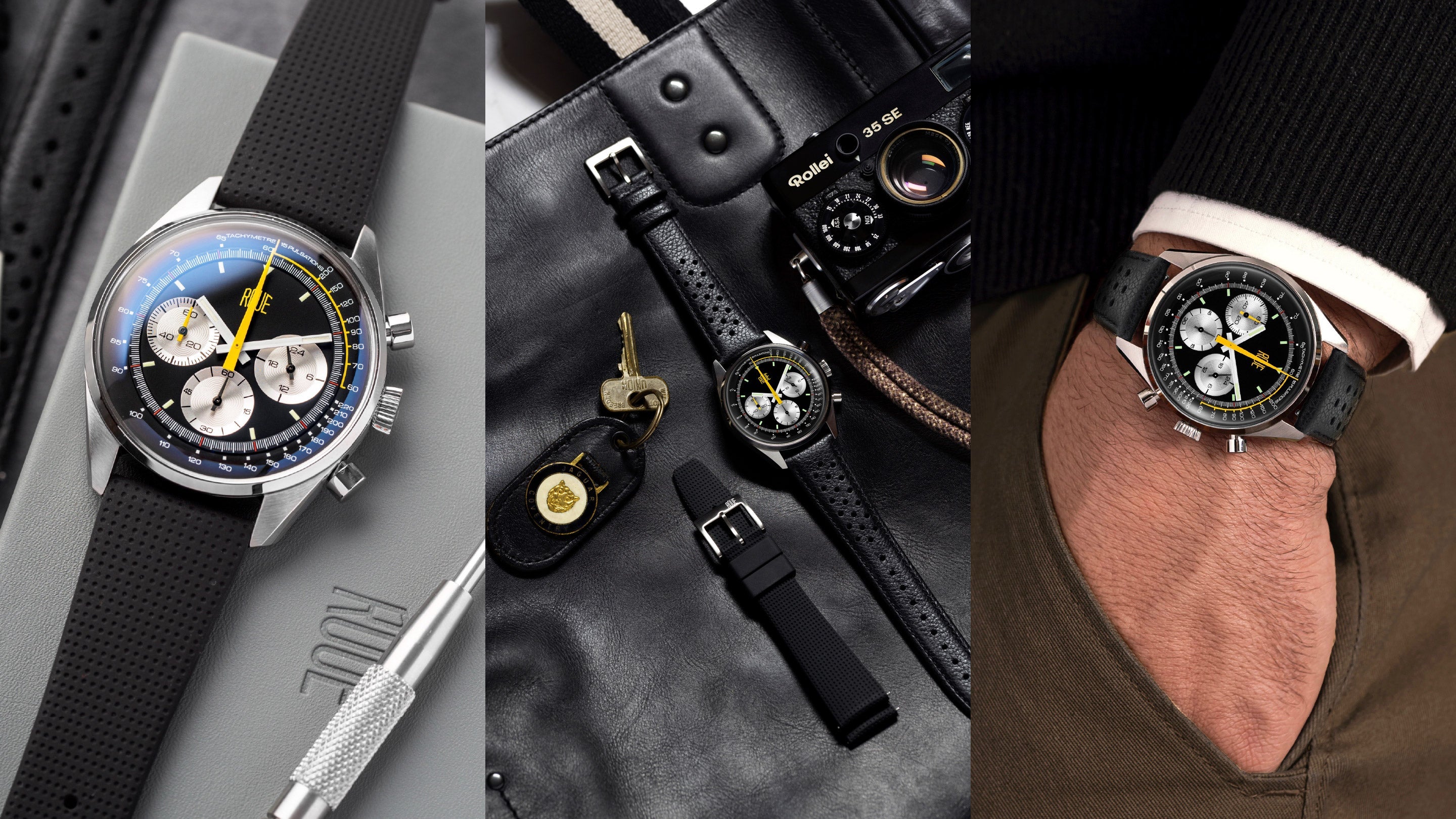 Black perforated Driver-style leather strap - Black Sport-style silicone strap