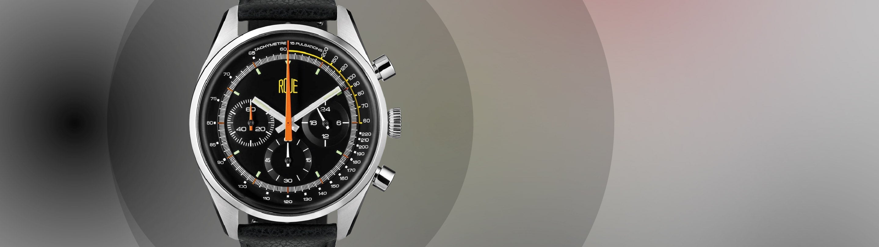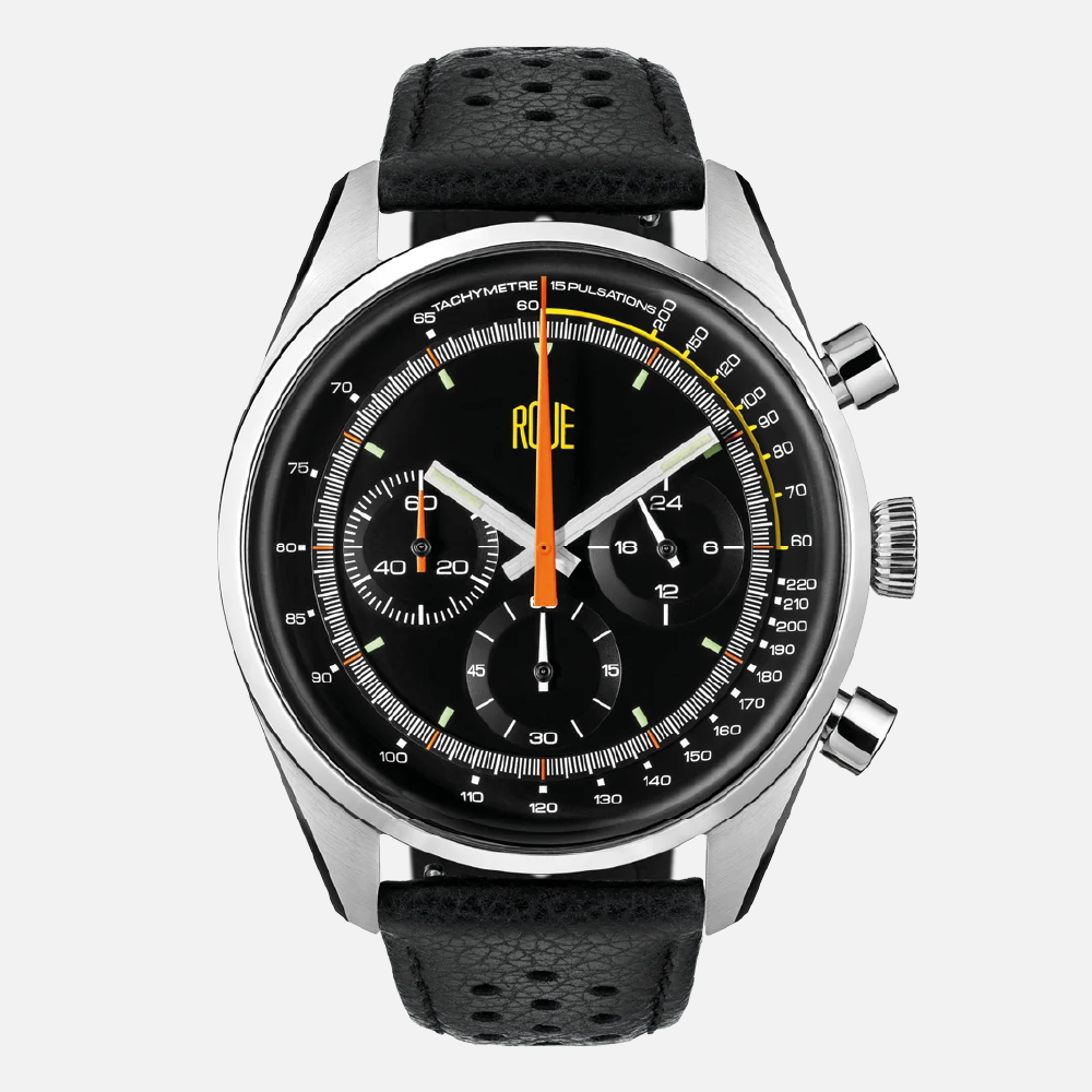 - Hours, minutes, seconds, chronograph minutes, am/pm