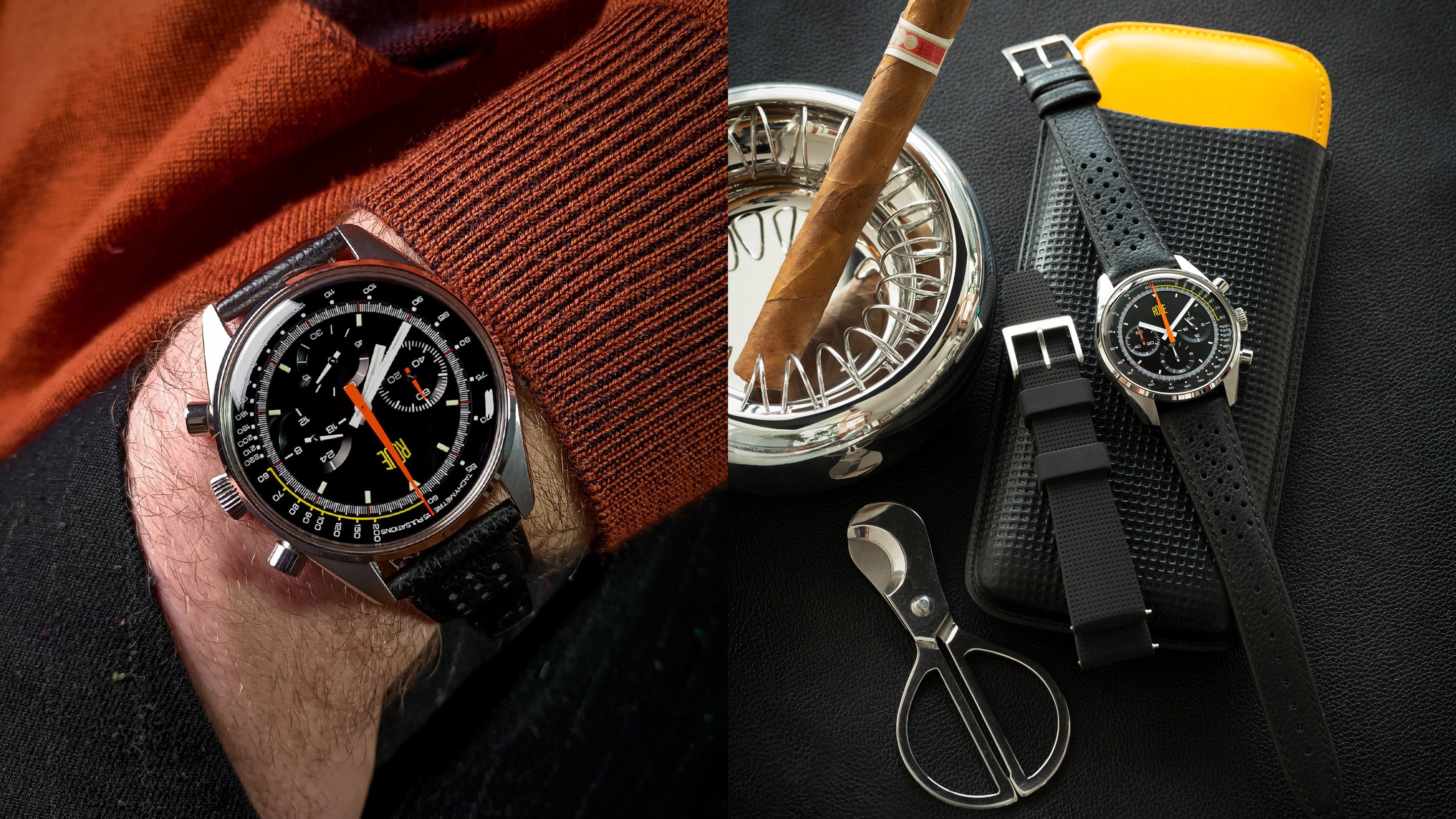 Black perforated Driver-style leather strap - Black Sport-style silicone strap